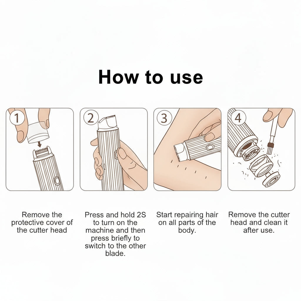 Meet the ultimate beauty essential designed to keep your skin flawless and hair-free. With dual precision heads that glide effortlessly for a close, gentle shave, it ensures smooth results without irritation. Crafted with hypoallergenic stainless-steel blades, it’s safe for every curve — from face to underarms to legs. Whether you shave wet or dry, at home or on the go, its compact, rechargeable design makes smooth skin effortless — wherever life takes you